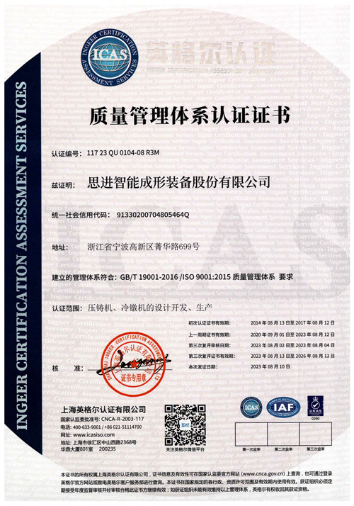 ISO9001:2015质量管理体系证书
