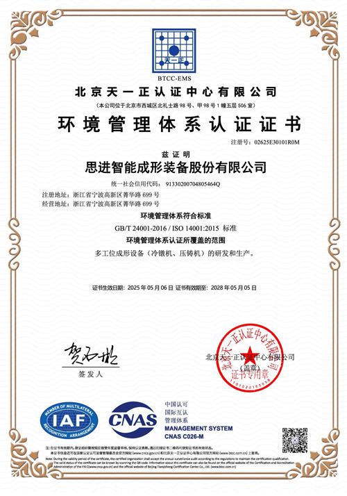 环境管理体系认证证书